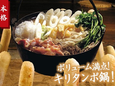 秋田県の郷土料理「キリタンポ鍋!」の具材セットです。具材とスープが一式全部揃っていますので簡単に美味しく本場の味をご賞味いただけます。
